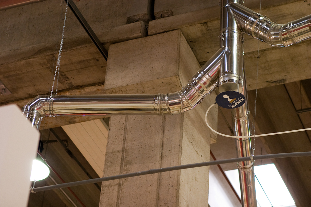 The smokes exhaust system which is implemented every two years at the Verona fair at the "Progetto Fuoco" event is one of the most important examples of applied know-how and quality service Camini Wierer. In fact our company manages the entire exposition of the structure's smoke exhaust system, specifically foreseeing the fair dedicated to the flue pipes sector with a connection capacity for up to a total of 244 heat generators working across four exhibition halls.