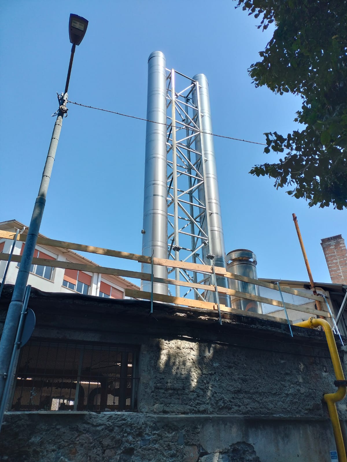 Il progetto ha incluso oltre 40 metri di camino realizzato con il nostro sistema Conix a doppia parete, con un diametro di 600 mm, e il relativo traliccio di sostegno in acciaio al carbonio con zincatura a caldo.
