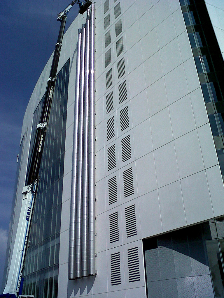 Das System zeichnet sich durch die Klemmung der Abdeckmodule mittels Blockierschellen mit Doppelkehle und statischer sowie mechanischer Wirkung aus und wird durch Schraubverbindungen aus Edelstahl befestigt. Die Vorrichtung zur Kompensation von thermischer Ausdehnung an der Spitze des Kamins garantiert zusammen mit dem Zubehör dieser Produktpalette die perfekte Funktionalität des Systems sowie die Erfüllung der der geltenden Normen. Verfügbare Durchmesser: Alle, auf Bestellung.