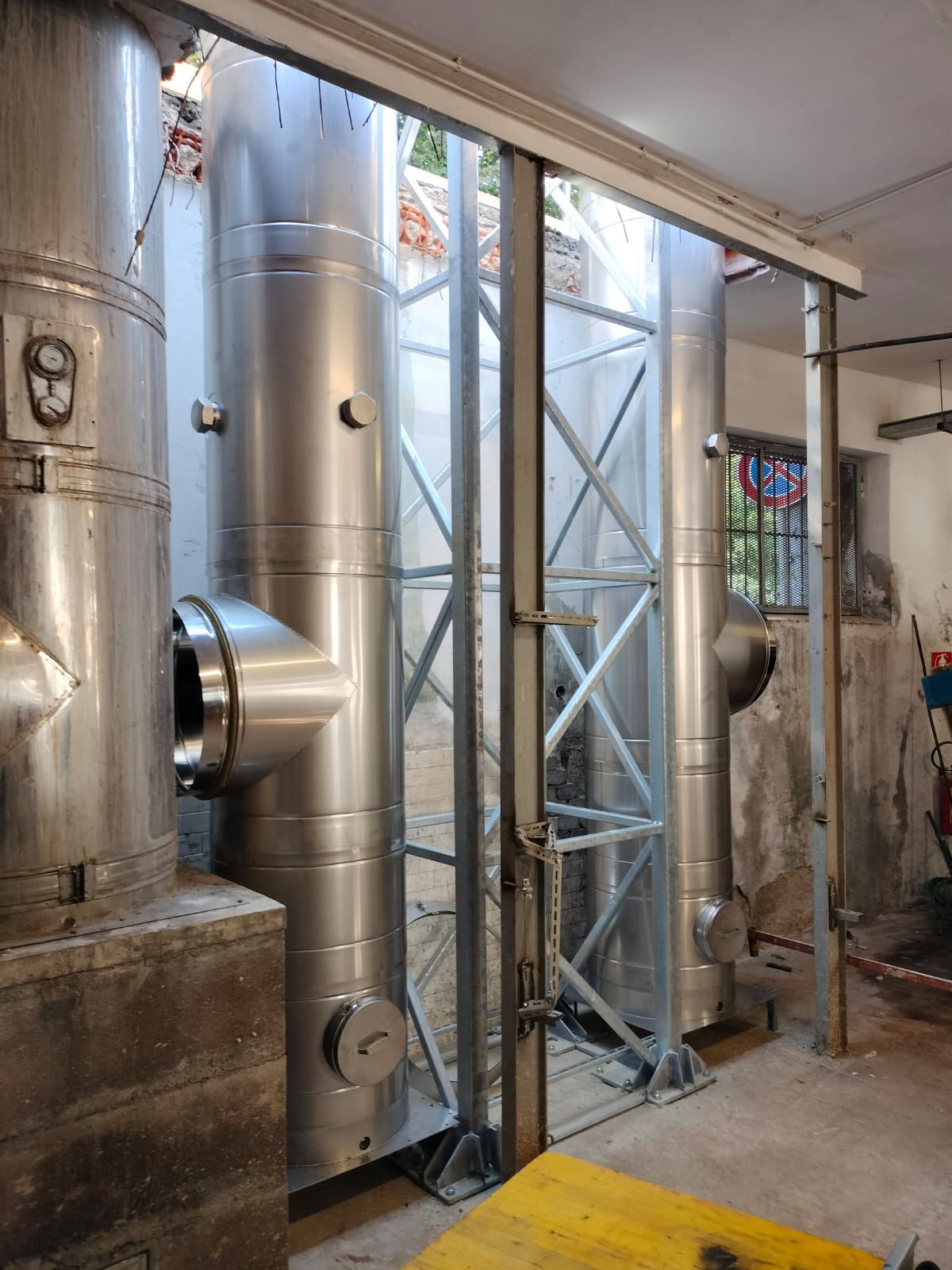 Il progetto ha incluso oltre 40 metri di camino realizzato con il nostro sistema Conix a doppia parete, con un diametro di 600 mm, e il relativo traliccio di sostegno in acciaio al carbonio con zincatura a caldo.